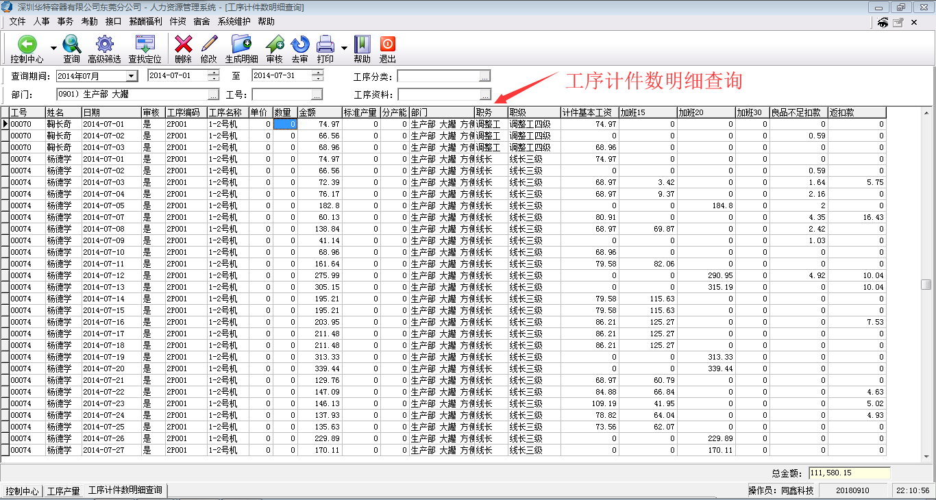 1)定制了按工序錄入每日計件資料,實現按每日工序的產量計算計件工資;
