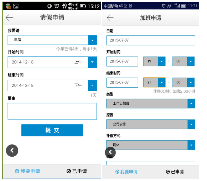 以處理人員考勤為例,員工隨時通過手機能查看到本人的考勤異常情況,什么時候有過遲到,早退現(xiàn)象,加班小時多少,是否有缺卡,年休假還剩余多少等,統(tǒng)統(tǒng)一目了然,并能自行提交簽卡,請假等申請,由管理人員對申請記錄進行審核后,數(shù)據(jù)自動進入到同鑫eHR系統(tǒng)中參與計算,做到了數(shù)據(jù)的及時性和準確性,也使管理人員擺脫了大量的簽卡和請假數(shù)據(jù)的輸入工作,極大地提高了管理人員的工作效率。